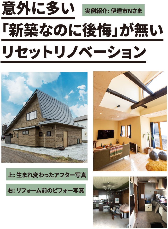 長年住み継がれてきた家も、家族構成やライフスタイルの変化とともに、少しずつ“暮らしにくさ”を感じるようになります。間取りや動線、収納の不足、室温のムラや古くなった内装。 このニセコ町の住まいも、そんな日々のストレスが積み重なった家でした。そこで私たち土屋建設がご提案したのが、「再生」ではなく「再設計」。木造軸組み工法で建てられたこの家の構造体を活かしながら、間取り・性能・素材・空間すべてを暮らしに合わせてゼロから見直す「リセット・リノベーション」で、“暮らしのもやもや”を根本から解消していきました。