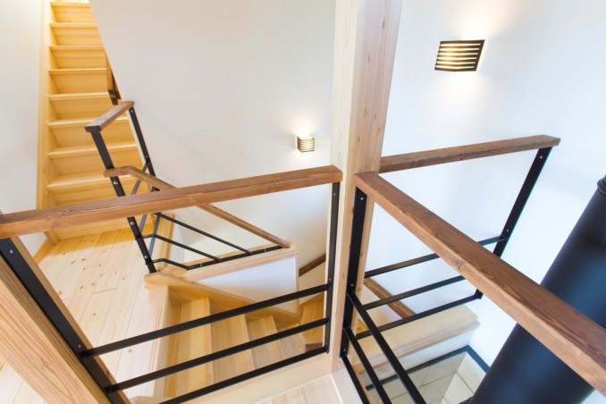 薪ストーブの熱が1階の吹抜けを通り2階からロフトへ上がり、その熱が階段を通じて下の階に循環するように計画しました。