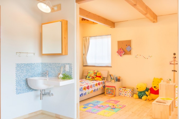 2つの子供部屋は、成長に合わせて後々仕切れるように計画し、仕切った後でも各部屋に光と風が通り抜ける様、2箇所の窓を配置しています。