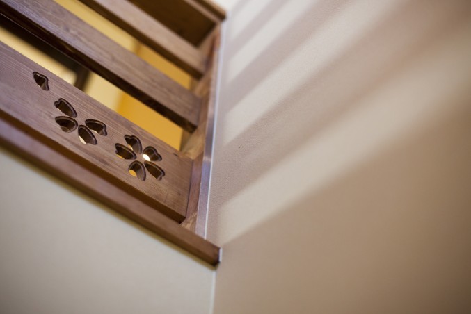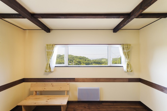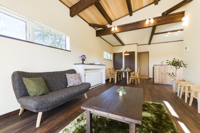 赤松の板を貼ることで無垢の登り梁を強調しました。