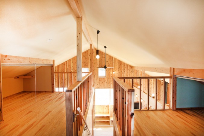 ・空間を広く感じれる様に、吹き抜けを中心に各部屋をつないだ。