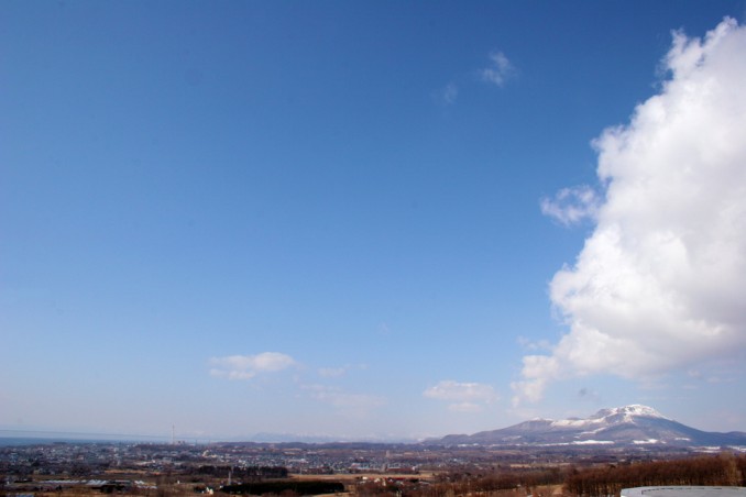 ・2階フリースペースの北西側の窓からは、デスクに座ると有珠山が眺望できるようにした。