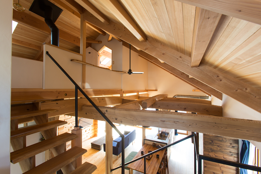 家の真ん中を通した薪ストーブの煙突