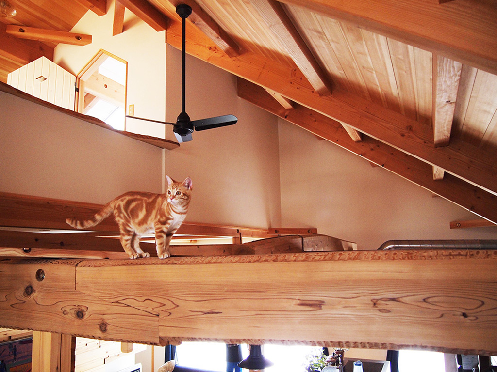 偶然なのか、狙ったのかは内緒ですが、お気に入りは太い梁の上。