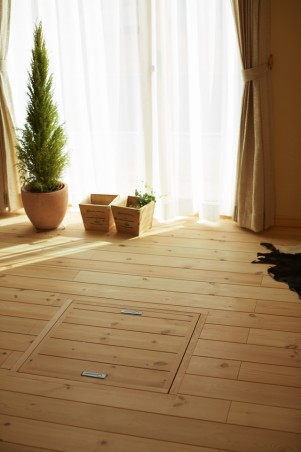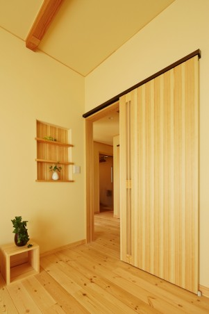 クローゼットは桐材を、床・壁、天井に採用いたしました。 全体が調湿効果に優れた桐タンスのようになっています。