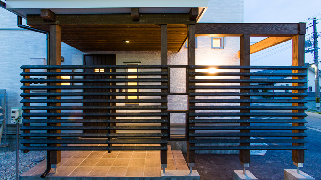 エントランスのルーバーにはプランターでお花を飾りたい